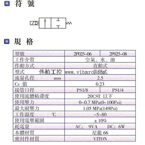 2P025-06,AIRTAC电磁阀,2P系列电磁阀(二口二位)