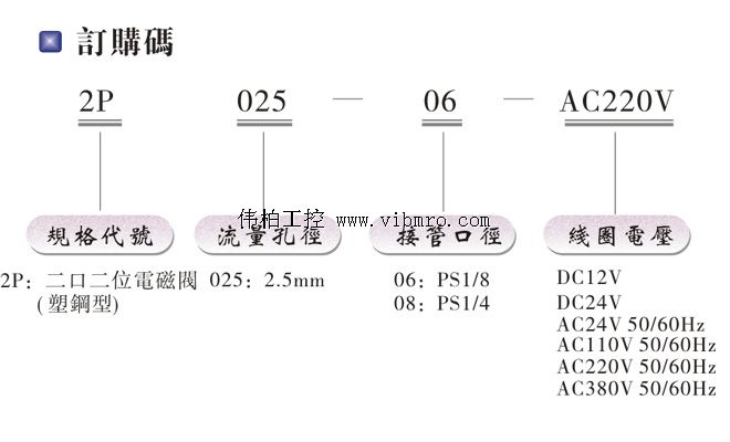 产品标题:2P025-08,AIRTAC电磁阀,2P系列电磁阀(二口二位)